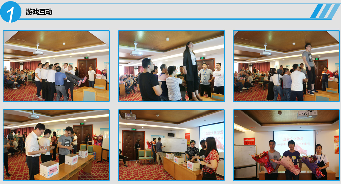 活動分兩部分進行,第一部分為游戲階段,游戲參與者通過游戲體驗企業凝聚力和向心力在實踐中的應用,暢談感受,同時通過無記名投票的形式評選出最受歡迎的高管,中層和員工。